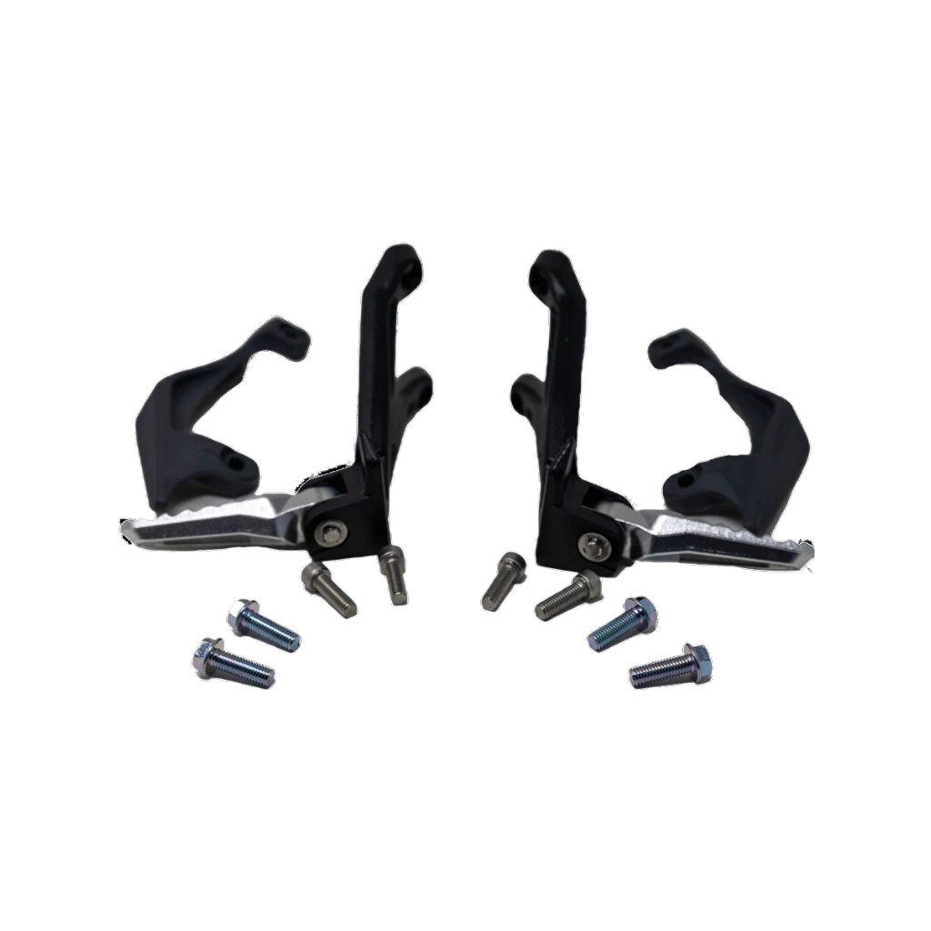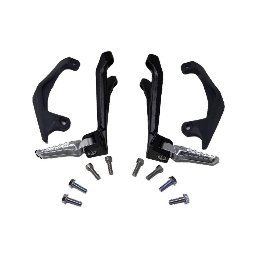 Der Beifahrer-Kit enthält die werkseitigen linken und rechten Fußrasten, Montagehalterungen, Beifahrergriffe und Befestigungsschrauben.