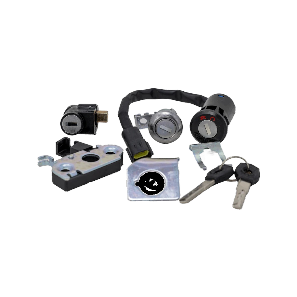 Enthält Schlüssel, Zündschloss, Batteriefachschloss und Lenkradschloss.