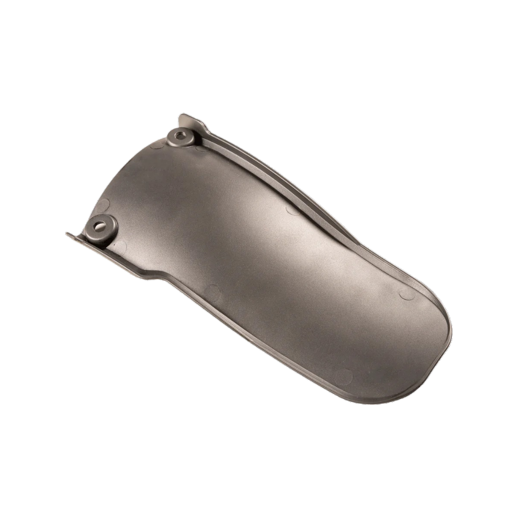 Gummi-Schutzblech. Wird am Hilfsrahmen-Kotflügel befestigt, um den hinteren Stoßdämpfer vor Schlamm und Schmutz zu schützen.