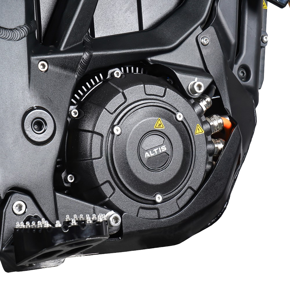 Mit einem 22.5 kW BLDC Motor liefert die Altis Sigma ein beeindruckendes Drehmoment von bis zu 600 NM, das für sofortige Power und Beschleunigung in jeder Geschwindigkeit sorgt. Mit einer Höchstgeschwindigkeit von 110 km/h erfüllt sie die Wünsche von Fahrern, die sowohl Geschwindigkeit als auch Nervenkitzel im Offroad-Bereich suchen. Der leistungsstarke Motor meistert technisches Gelände und steile Anstiege mühelos und macht die Sigma ideal für anspruchsvolle Offroad-Bedingungen.
