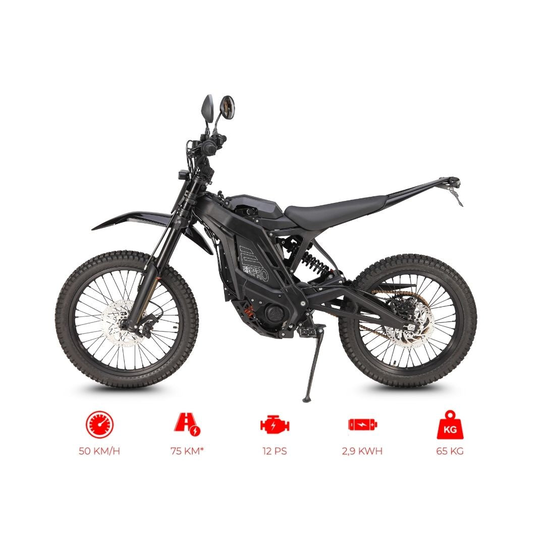 Erlebe die neueste Generation der E-Crossbikes mit der neuen E Ride Pro-SS Offroad. Dieses High-Performance-Bike bietet dank seiner robusten Bauweise und des kraftvollen Motors mit 9kW ein unvergleichliches Fahrerlebnis und übertrumpft die SUR-RON Light Bee in Sachen Power. Mit einer noch größeren Akkukapazität und einem intelligenten Design für maximale Sicherheit und Komfort ist es für alle Abenteuer gewappnet. Erlebe Innovation, Zuverlässigkeit und puren Fahrspaß.