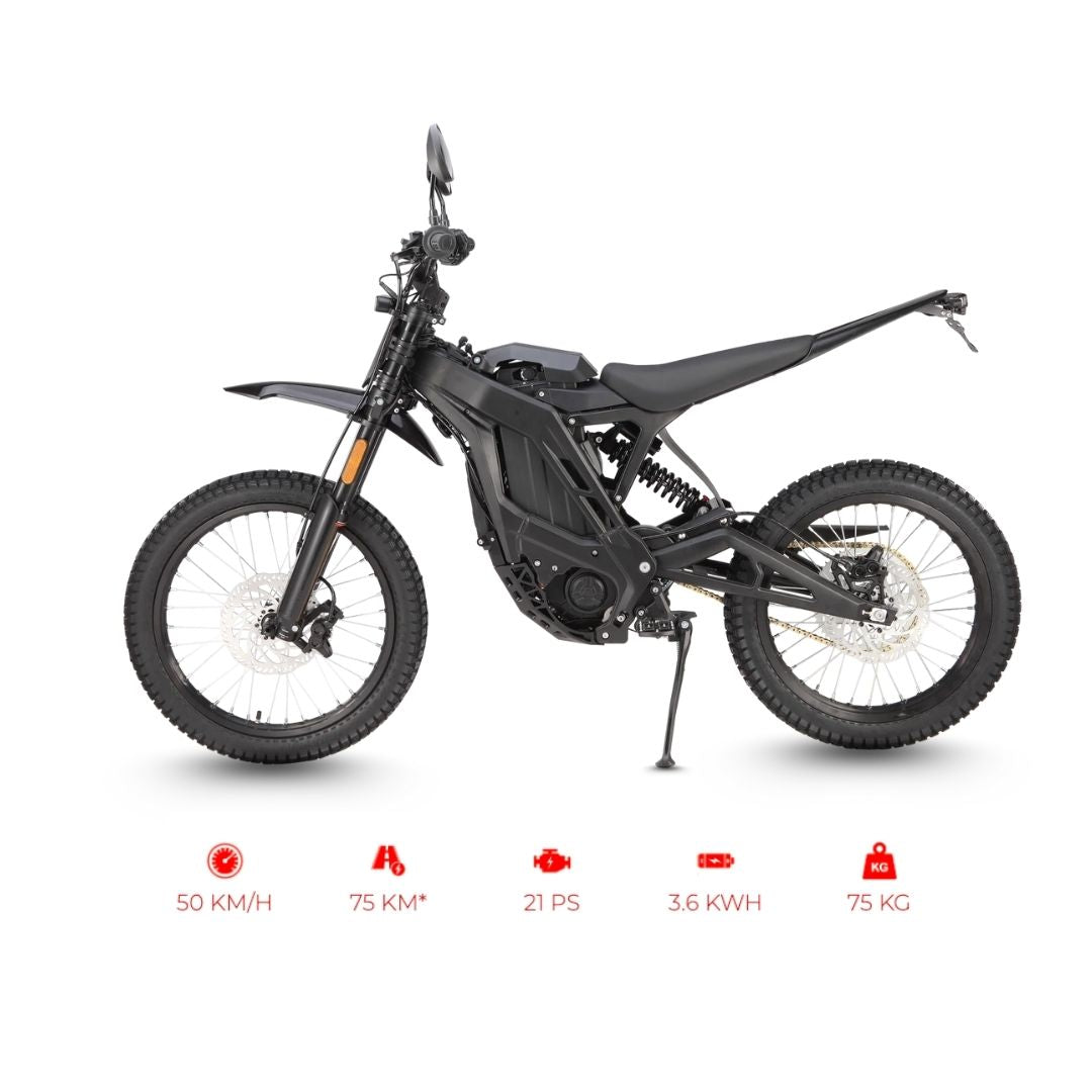 Erlebe die neueste Generation der E-Crossbikes mit der neuen E Ride Pro-SS Offroad. Dieses High-Performance-Bike bietet dank seiner robusten Bauweise und des kraftvollen Motors mit 9kW ein unvergleichliches Fahrerlebnis und übertrumpft die SUR-RON Light Bee in Sachen Power. Mit einer noch größeren Akkukapazität und einem intelligenten Design für maximale Sicherheit und Komfort ist es für alle Abenteuer gewappnet. Erlebe Innovation, Zuverlässigkeit und puren Fahrspaß.